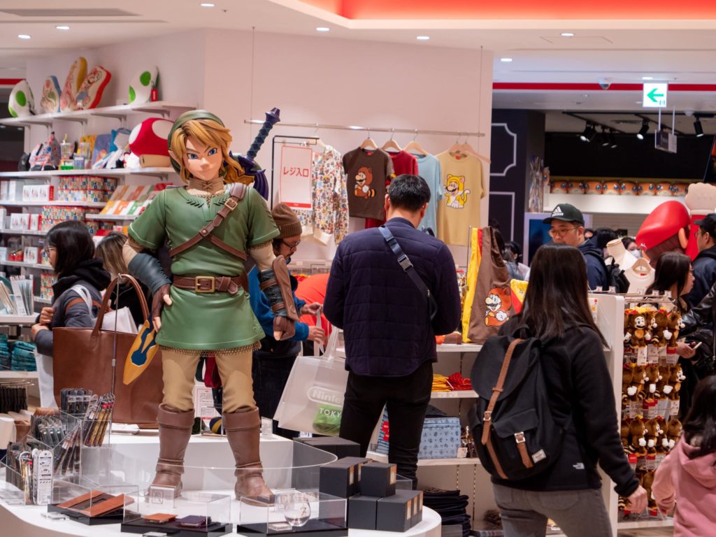 Patung-patung Zelda’s Link seukuran aslinya, Isabelle dari Animal Crossing, Inkling betina dari Splatoon, dan tentu saja Mario, dikelilingi oleh barang-barang spesial yang tidak bisa Anda dapatkan di tempat lain. Lebih baik kosongkan rekening bank Anda dan bawa koper ekstra besar.