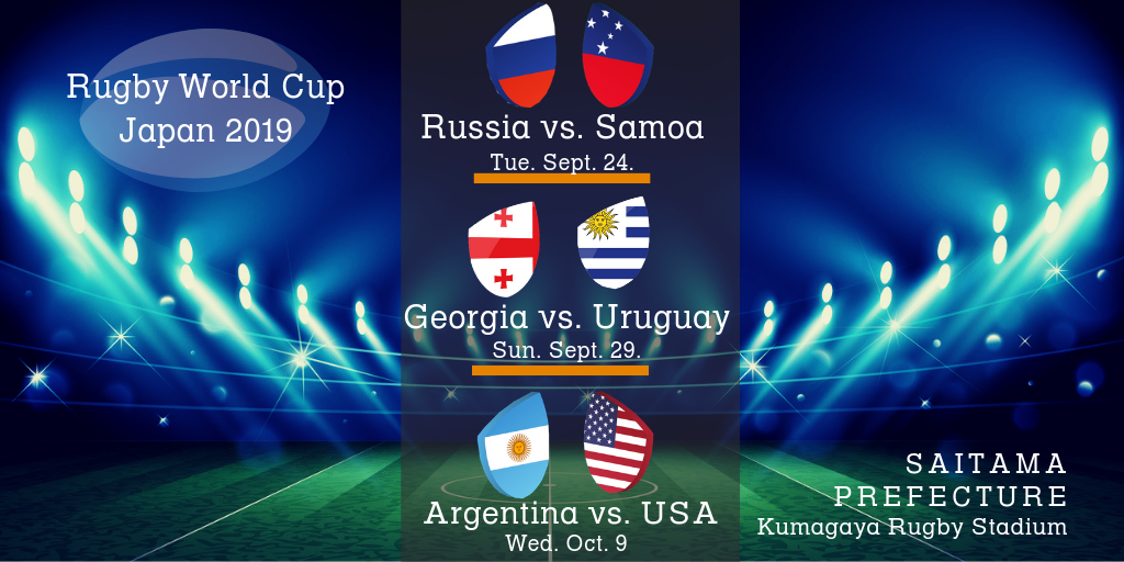 Stadion Rugbi Kumagaya yang baru direnovasi akan menjadi tuan rumah tiga pertandingan Piala Dunia Rugbi 2019: Rusia vs. Samoa, Georgia vs. Uruguay, dan Argentina vs. Amerika Serikat. Tepat di pinggiran utara Tokyo, Kumagaya dikenal memiliki salah satu tempat melihat bunga sakura terindah di Prefektur Saitama.