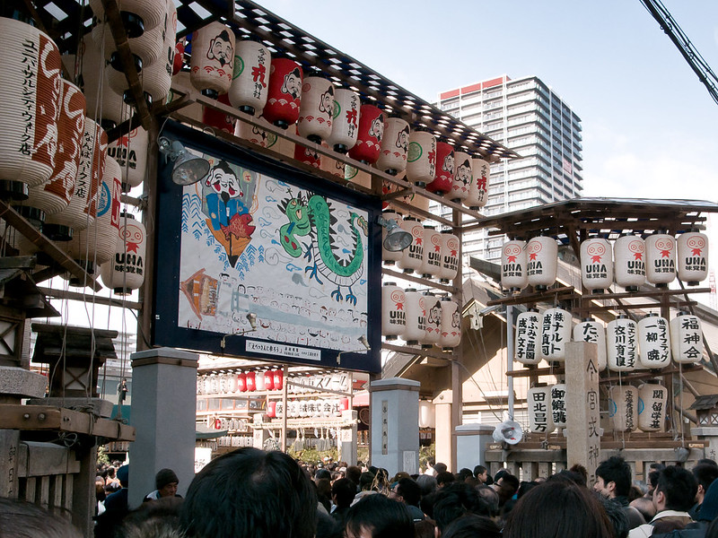 Diadakan setiap tahun dari 9 hingga 11 Januari, Toka Ebisu adalah tradisi menarik yang merayakan dewa Shinto Ebisu. Anda mungkin mengenali dewa keberuntungan yang periang ini dari logo bir Yebisu. Dia dianggap sangat beruntung di bidang perikanan dan bisnis. Kuil Imamiya Ebisu adalah rumahnya di Jepang berkat status Osaka sebagai kota pedagang yang makmur.