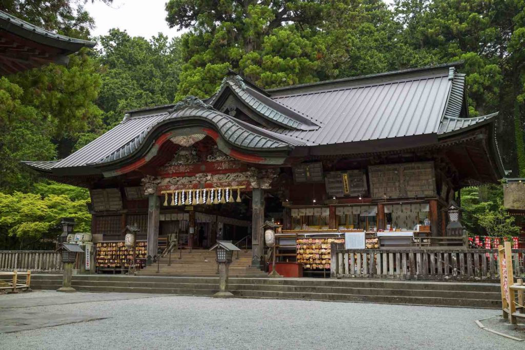 Bahkan jika Anda tidak berencana melakukan pendakian sendiri, Kuil Fujiyoshida Sengen tetap layak untuk dikunjungi. Kompleks ini terletak jauh dari jalan menuruni jalan berkerikil panjang yang dilapisi dengan lentera batu yang tampak kuno dan pepohonan yang menjulang tinggi. Setelah melewati gerbang torii merah yang disebutkan di atas, Anda akan menemukan diri Anda menghadap aula utama berornamen – juga dicat merah terang – yang berasal dari tahun 1615. Interiornya dihiasi dengan lentera, lukisan, dan dua topeng kayu besar yang menghadap ke bawah pada jamaah.