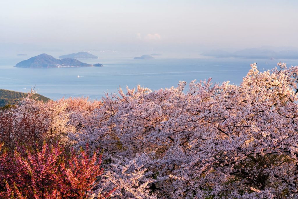 Juga dikenal sebagai Shiudeyama, Gunung Shiude adalah gunung megah yang menghadap ke Laut Pedalaman Seto. Ada lebih dari 1.000 pohon sakura yang ditanam di sepanjang lereng gunung. Beberapa berpendapat bahwa Shiudeyama adalah tempat melihat sakura terbesar di seluruh Jepang. Apakah itu benar atau tidak, kombinasi laut, matahari terbenam, dan bunga sakura akan membuat Anda terkagum-kagum.